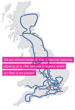 In places where our fiber is not present, we use the network and physical capacity of partners to reach the client site and route the traffic to our Internet backbone. In these cases, we use different technologies available on the market (EoMPLS, EoS, Optical Ethernet, ATM) to optimize the rollout costs and achieve our clients’ budget objectives.